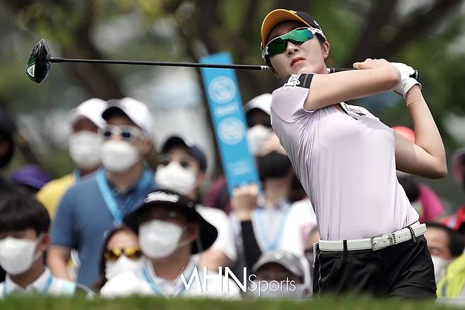 안송이(32.KB금융그룹)가 1번홀 티샷을 날리고 있다.