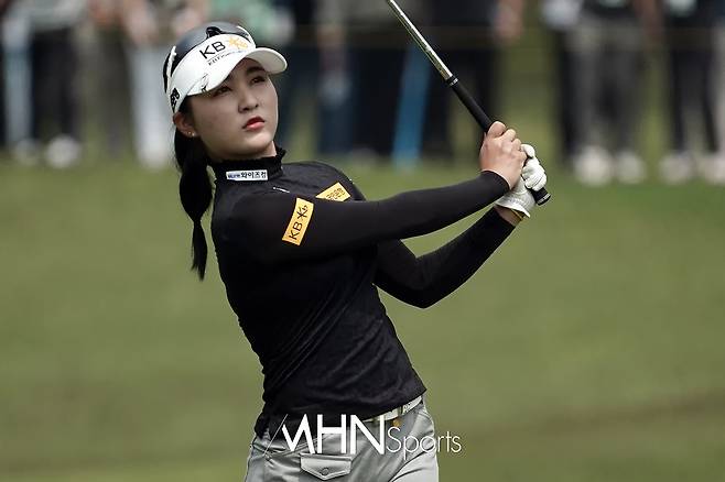 이예원(19.KB금융그룹)이 1번홀 세컨드샷을 날리고 있다.