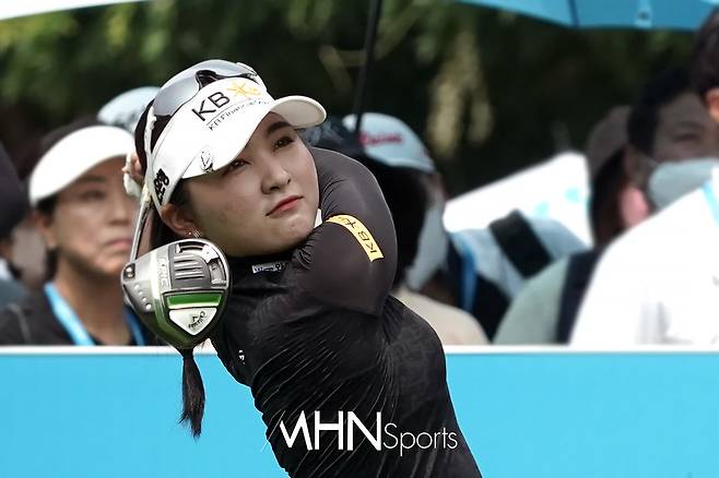 이예원(19.KB금융그룹)이 2번홀 티샷을 날리고 있다.