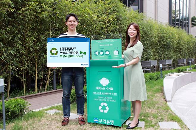 우리금융지주의 자회사 우리은행은 자원순환을 통한 자원 효율화 및 순환경제에 동참하기 위해 임직원과 고객이 함께 참여하는 마스크 자원순환 캠페인 '희망 리본(Re-born)'을 실시한다고 22일 밝혔다.