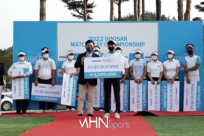 두산 골프 꿈나무 장학생들에게 장학금 전달[포토]