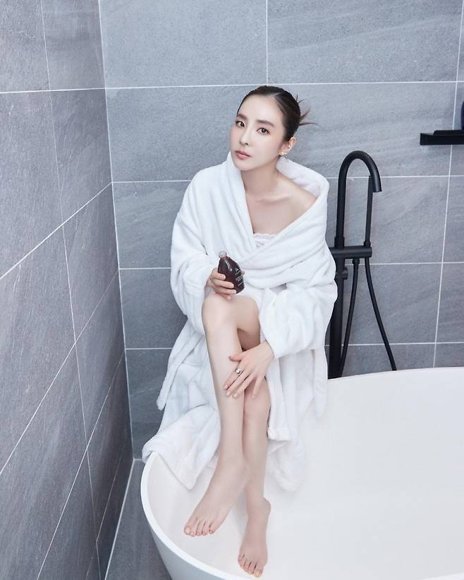 사진 속 산다라박은 샤워가운을 입고 욕조에 걸터앉아 다리를 꼬는 요염한 포즈를 취하고 있다. 한쪽 어깨를 살짝 드러낸 산다라박은 은근한 섹시미를 발산해 시선을 사로잡는다. 연예계 대표 동안 미녀로 소녀 같은 이미지가 강했던 산다라박의 반전 매력이 놀라움을 자아낸다.
