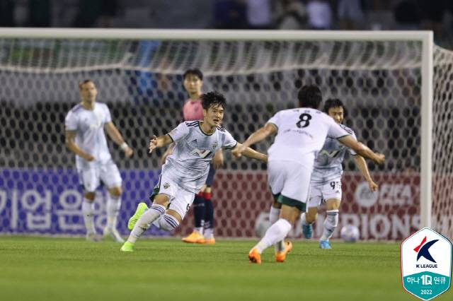 전북은 22일 수원종합운동장에서 열린 수원FC와의 '하나원큐 K리그1 2022' 14라운드에서 후반 26분 터진 김진규의 결승골을 앞세워 1대0으로 이겼다.