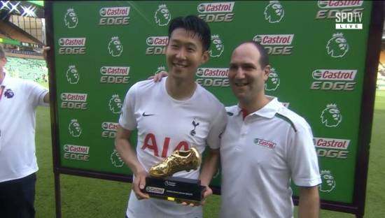 손흥민은 경기 후 덤덤히 골든 부츠를 받았다. 그는 아시아 선수로는 최초로 프리미어리그 득점왕이라는 새로운 역사를 썼다. 그는 환하게 웃으며 사진 촬영을 했다.