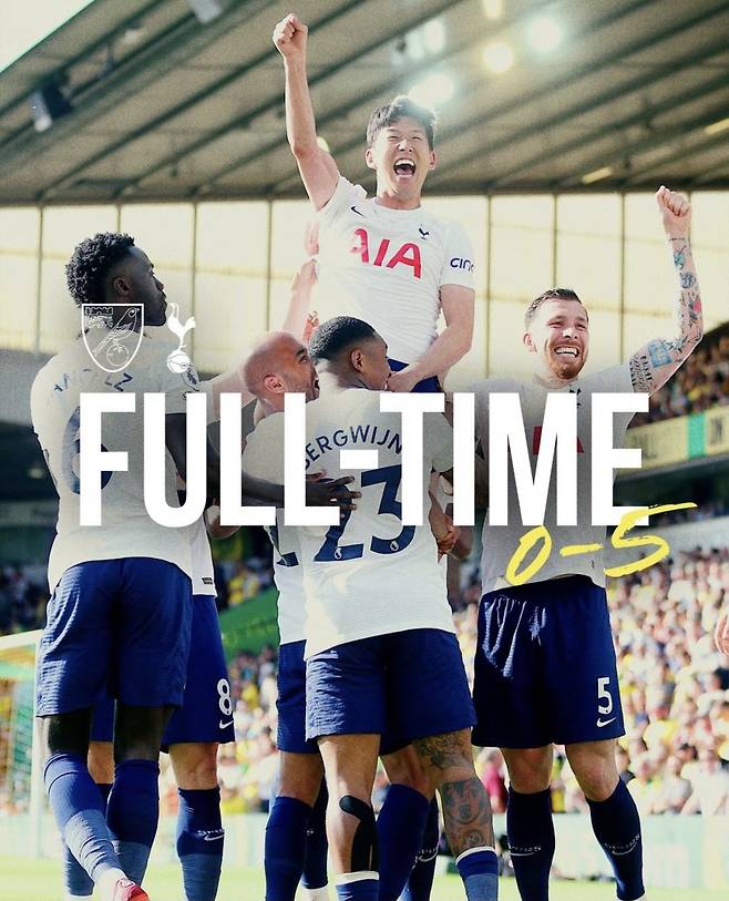 손흥민은 노리치시티와의 2021/22 프리미어리그 38라운드 최종전에서 멀티골을 폭발하며 리그 23호골을 기록했다. 토트넘 홋스퍼는 손흥민의 맹활약과 클루세프스키의 2골, 케인의 1골을 더해 5-0 대승을 거두며 시즌을 마무리했다. 이날 승리로 토트넘은 다음 시즌 챔피언스리그 진출에도 성공했다.