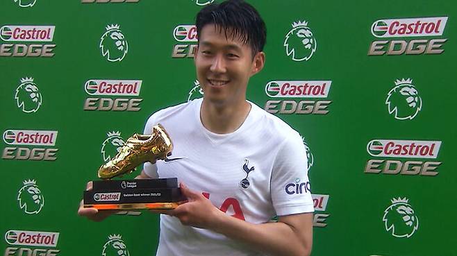 [손흥민 : 어린 시절 꿈꾸던 득점왕 트로피가 제 손에 있다니 믿지 못할 만큼 기쁩니다. 많은 도움을 준 동료와 코칭 스태프에게 감사드립니다.]