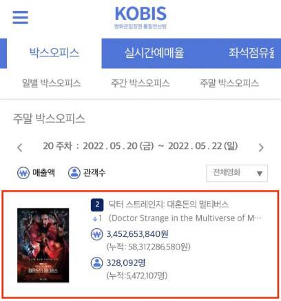 관객들의 N차 관람 열풍 속에 '닥스2'가 개봉 3주 차 주말 32만8092명의 관객을 동원하며 전편 '닥터 스트레인지'의 흥행 스코어인 544만을 돌파, 또 한 번의 흥행 기록을 세웠다.