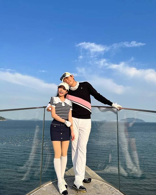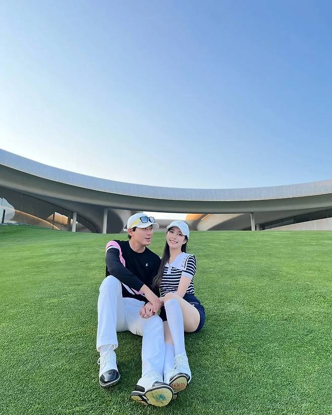 사진 속에는 골프장에서 행복한 시간을 보내고 있는 이지훈 아야네 부부의 모습이 담겨있다.
