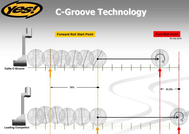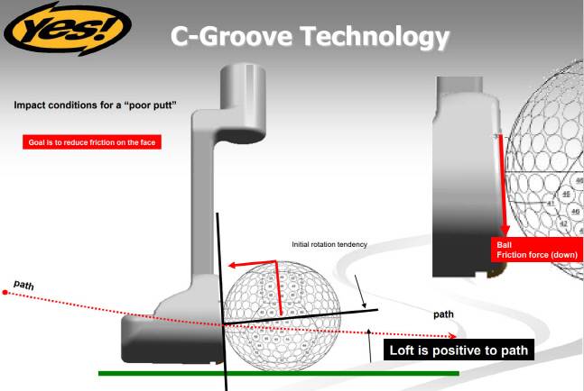 C그루브는 알파벳 C자 형태를 그리는 촘촘한 C-GROOVE 동심원에서 시작된다. 이 날이 볼의 표면을 잡아주며 퍼팅과 동시에 전회전(순회전)시켜 볼이 미끄러지는 스키드 현상과 튀는 현상을 보완한다. 미끄러지거나 튐 없이 즉각적인 롤링을 나오게 돕는다. 퍼터 페이스를 떠난 볼의 첫 이동이 중요한데 이를 잡아주기 때문에 퍼팅 성공 확률이 높다. 일반적인 퍼터는 임팩트 후 10~20㎝ 정도 미끄러지다 구르기 시작한다. 처음부터 방향이 흐트러질 수 있다. 하지만 C그루브를 적용시킨 예스퍼터는 2~4㎝ 지난 직후 바로 볼이 지면에 안착해 굴러간다.