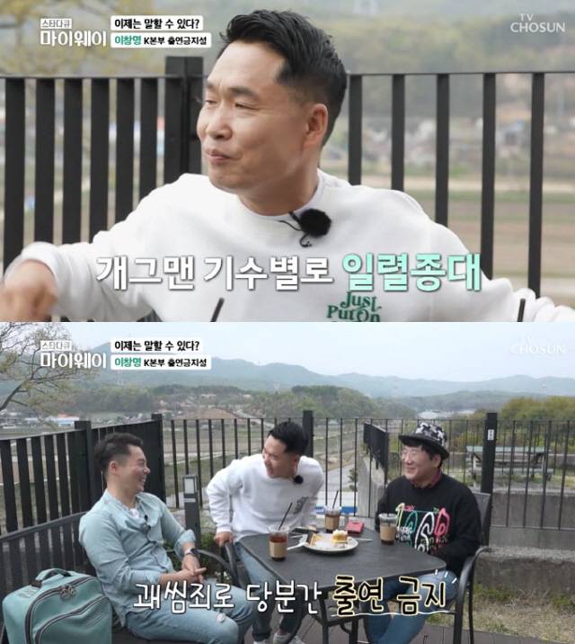 이날 이창명은 KBS 출연금지설 비화를 이야기했다. 그는 "KBS 개그맨 9기 동기가 박수림, 권영찬이다. 우리 바로 윗선배가 유재석, 김용만, 김국진, 박수홍, 양원경, 남희석이었다"며 "나는 매일 지나가는 행인 역할만 했다. 너무 하기 싫었다. 그런데 예능 퀴즈 프로에서 섭외가 들어왔다. 하필 개그맨 방송 녹화날이랑 겹쳤다. 안 되는데 하고 싶어서 출연하겠다고 했다. 그래서 아침에 출근하자마자 배가 아프다고 했다. 심형래 선배가 '너 왜 그래?'라고 물어보기에 '장염에 걸린 것 같다'고 말했다. 병원 갔다 오라고 하더라. 차를 몰고 병원이 아닌 KBS 별관으로 갔다"고 회상했다.