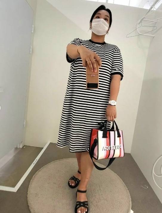 사진에는 피나는 다이어트의 결과로 부쩍 늘씬해진 하재숙의 모습이 담겼다.