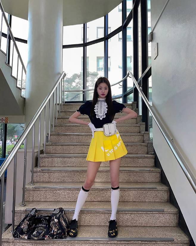 이때 173cm의 큰 키의 소유자인 장원영은 초미니스커트를 입고 늘씬한 각선미는 물론 놀라운 비율을 자랑하고 있어 감탄을 자아냈다.