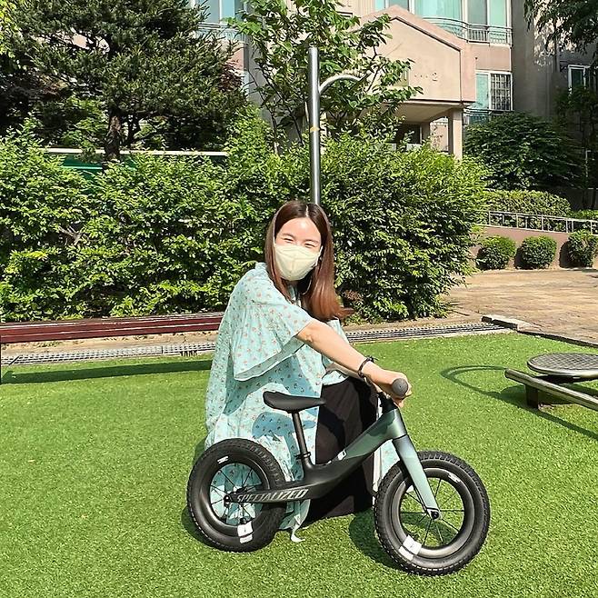 공개된 사진에는 박시은이 지인에게 선물 받은 아기 자전거가 담겨있다.