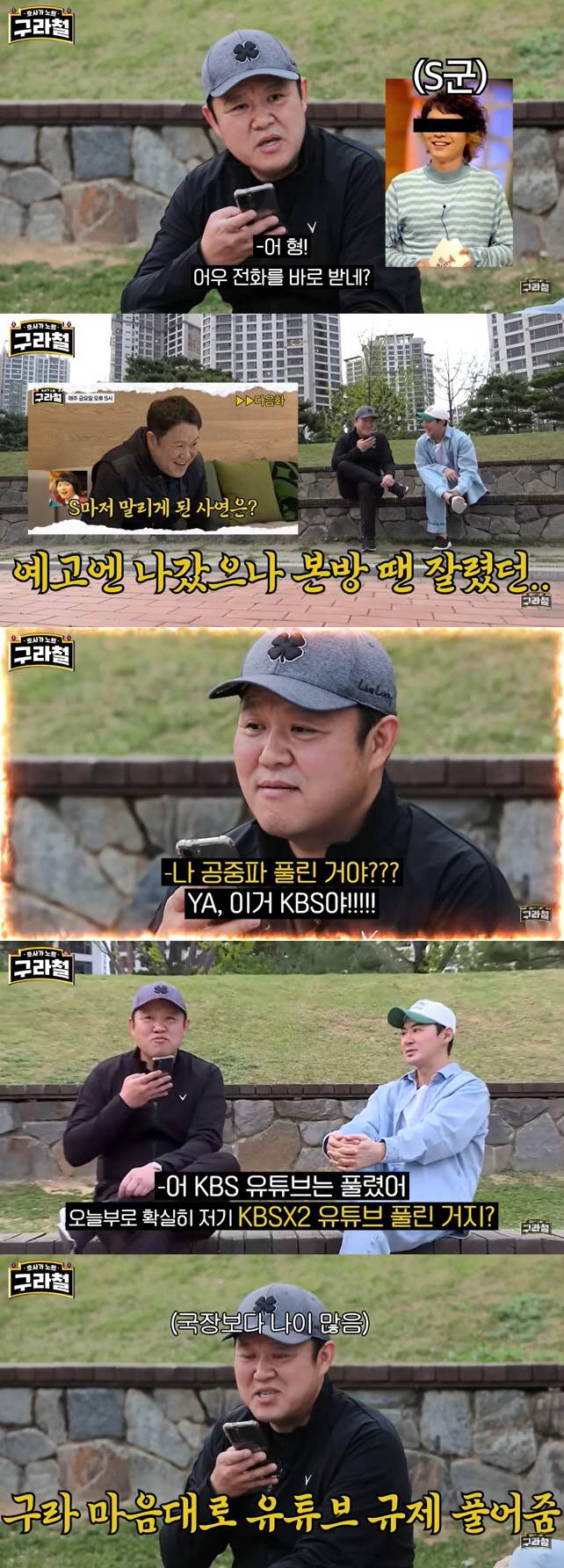 신정환은 "나 공중파 풀린 거냐. 오늘부로 확실히 KBS 유튜브 풀린 거지?"라고 물었고 김구라는 "KBS 유튜브는 풀렸어"라고 답했다.