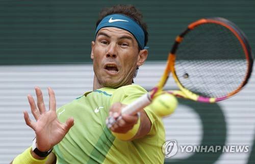 epa09969428 Rafael Nadal of Spain plays Jordan Thompson of Australia in their men?s first round match during the French Open tennis tournament at Roland ?Garros in Paris, France, 23 May 2022. EPA/YOAN VALAT
