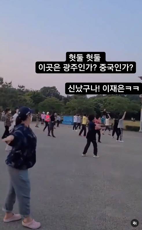 공개된 영상 속에는 공원서 모여 체조를 하고 있는 주민들 사이에서 함께 춤을 추고 있는 이재은의 모습이 담겼다.