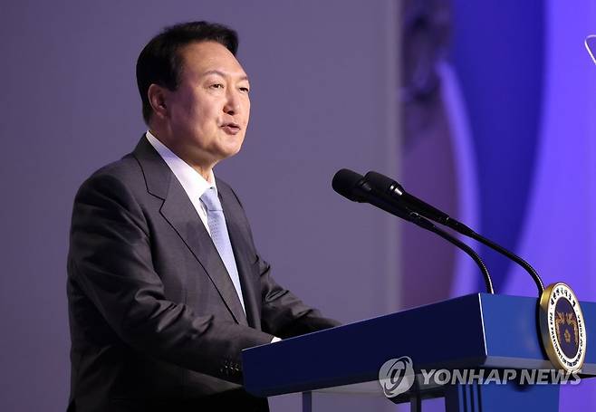 (대구=연합뉴스) 안정원 기자 = 윤석열 대통령이 24일 대구 엑스코에서 열린 2022대구세계가스총회(WGC)에서 축사를 하고 있다. 2022.5.24