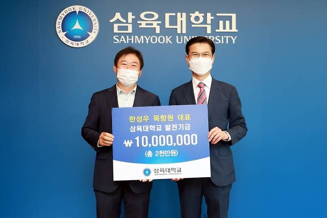 삼육대학교는 최근 '목향원'의 한성우 대표로부터 대학 발전기금 1000만 원을 기부받았다고 24일 밝혔다.