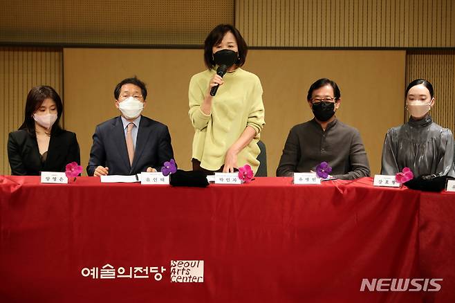 [서울=뉴시스] 박진희 기자 = 유인택 예술의전당 사장과 박인자 대한민국발레축제추진단 예술감독이 24일 서울 서초구 예술의전당 인춘아트홀에서 '2022 제12회 대한민국발레축제' 기자간담회를 하고 있다. 이날 간담회에 안무가 이윤지(프로젝트클라우드나인), 박기현(박기현발레단), 김용걸(김용걸댄스씨어터), 주재만(와이즈발레단), 문병남(M발레단), 유인택 사장, 박인자 예술감독, 안무가 유병헌(유니버설발레단), 강효형(국립발레단), 유장일(유장일발레단), 함도윤(아함아트프로젝트), 이루다(이루다 블랙토)가 참석했다. 축제는 예술의 전당에서 6월 9일부터 29일까지 열린다. 2022.05.24. pak7130@newsis.com