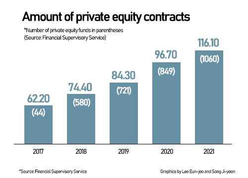 According to the Financial Supervisory Service data, the balance in registered closed-end PEFs totaled 116.1 trillion won at the end of December last year.