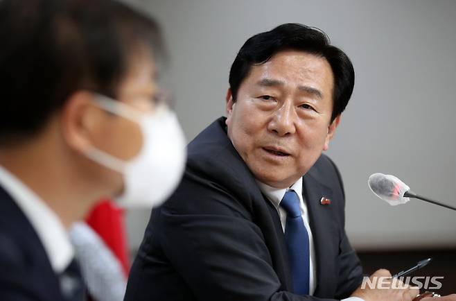 [서울=뉴시스] 고범준 기자 = 김기문 중소기업중앙회 회장이 24일 오후 서울 영등포구 중소기업중앙회에서 이정식 신임 고용노동부 장관과의 간담회에 앞서 인사말을 하고 있다. 2022.05.24. bjko@newsis.com