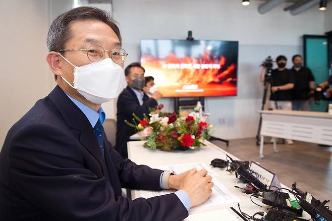 [서울=뉴시스] 이종호 과학기술정보통신부 장관이 24일 오후 서울 강남구 퓨리오사AI에서 열린 간담회에 참석해 인사말을 하고 있다. (사진=과학기술정보통신부 제공) 2022.05.24. photo@newsis.com *재판매 및 DB 금지