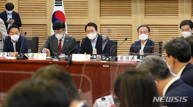 [서울=뉴시스] 고범준 기자 = 성일종 국민의힘 정책위의장이 24일 서울 여의도 국회의원회관에서 열린 디지털 자산기본법 제정과 코인 마켓 투자자보호 대책 긴급 당정 간담회에서 발언을 하고 있다. (공동취재사진) 2022.05.24. photo@newsis.com