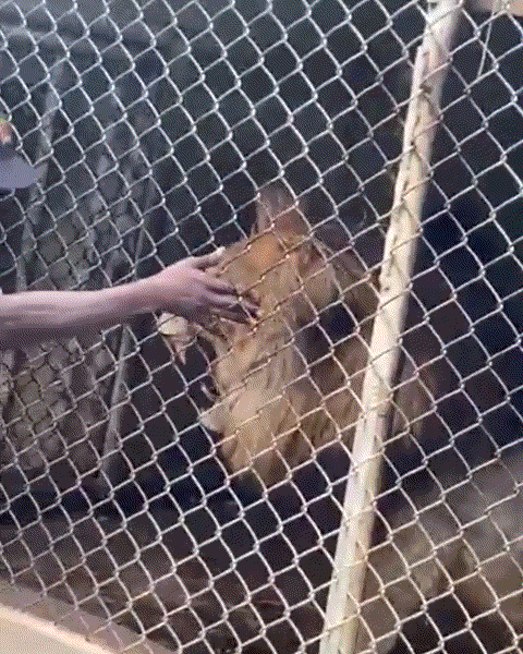 당시 상황이 담긴 영상에 따르면 사육사는 우리에 손을 집어넣은 뒤 사자를 쓰다듬기 시작했습니다.