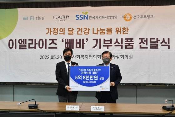 한국사회복지협의회 전국푸드뱅크는 라이프스타일 기업 이엘라이즈가 5월 가정의 달을 맞아 단백질바 20만개(5억8000만원 상당)를 기부했다고 23일 밝혔다.