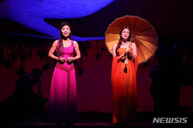 [서울=뉴시스] 박진희 기자 = 뮤지컬 '아이다' 출연 배우들이 24일 서울 용산구 블루스퀘어홀 신한카드홀에서 프레스콜을 하고 있다. 2022.05.24. pak7130@newsis.com