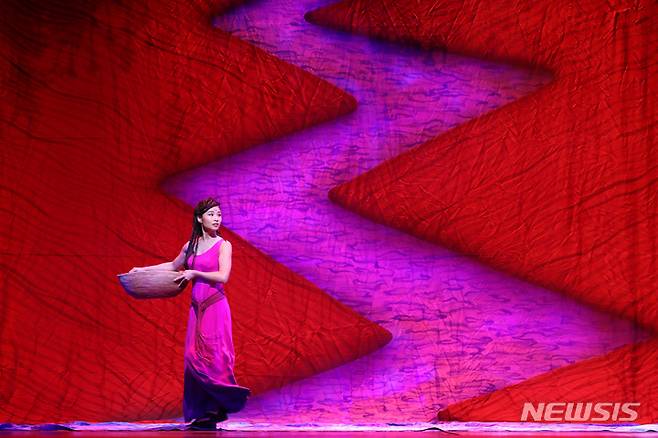 [서울=뉴시스] 박진희 기자 = 뮤지컬 '아이다' 출연 배우들이 24일 서울 용산구 블루스퀘어홀 신한카드홀에서 프레스콜을 하고 있다. 2022.05.24. pak7130@newsis.com