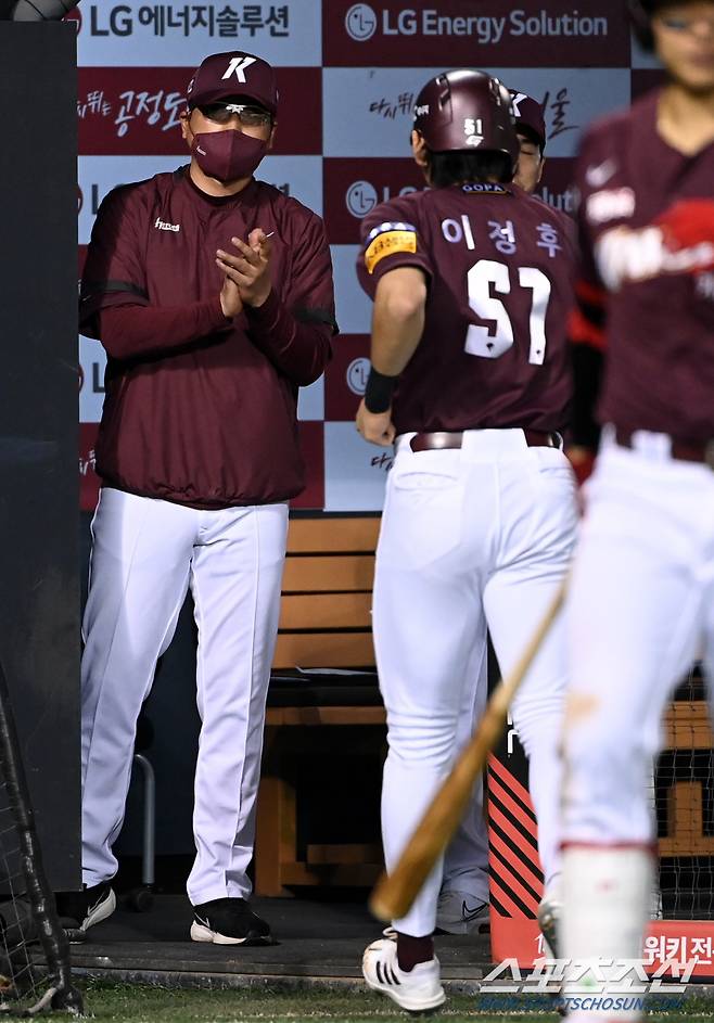 2022 KBO리그 키움 히어로즈와 LG 트윈스의 경기가 24일 잠실야구장에서 열렸다. 6회초 1사 3루 키움 김혜성의 적시타때 홈을 밟은 이정후가 홍원기 감독과 기쁨을 나누고 있다. 잠실=허상욱 기자wook@sportschosun.com/2022.05.24/