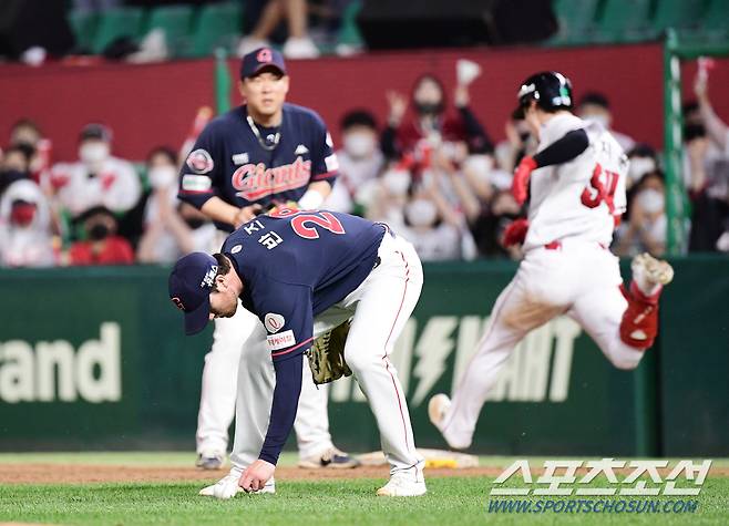 24일 인천 SSG랜더스필드에서 KBO리그 SSG와 롯데의 경기가 열렸다. 8회 SSG 최지훈에게 기습번트 내야안타를 허용하고 있는 반즈. 인천=송정헌 기자songs@sportschosun.com/2022.05.24/