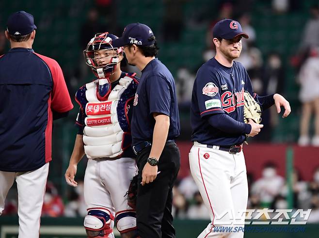 24일 인천 SSG랜더스필드에서 KBO리그 SSG와 롯데의 경기가 열렸다. 9회 1사 1루에서 롯데 선발 반즈가 마운드를 내려가고 있다. 인천=송정헌 기자songs@sportschosun.com/2022.05.24/