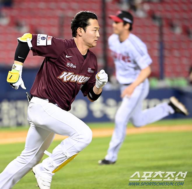 2022 KBO리그 키움 히어로즈와 LG 트윈스의 경기가 24일 잠실야구장에서 열렸다. 9회초 1사 2루 키움 김준완이 1타점 적시타를 치고 있다. 잠실=허상욱 기자wook@sportschosun.com/2022.05.24/