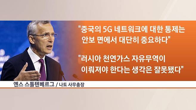 스톨텐베르그 사무총장은 "중국과의 무역에 반대론을 펴는 것이 아니다"면서 "5G 네트워크에 대한 통제는 안보 면에서 대단히 중요하다"고 말했는데요.