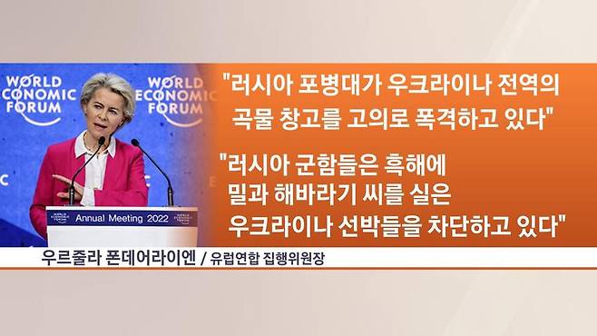 네, 우르줄라 폰데어라이엔 유럽연합 집행위원장은 "러시아가 식량 공급을 무기로 사용해 협박하고 있다"고 밝혔습니다.