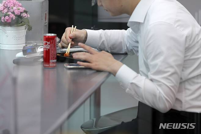 25일 오후 서울 시내 한 편의점에서 시민이 식사를 하고 있다.
