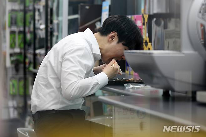 25일 오후 서울 시내 한 편의점에서 시민이 식사를 하고 있다.