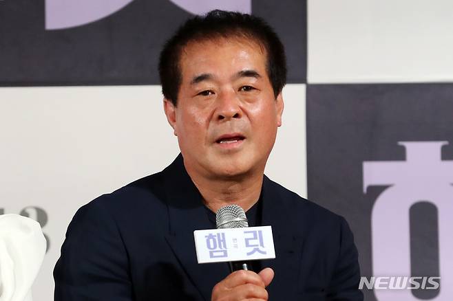 [서울=뉴시스] 박진희 기자 = 연극 '햄릿' 프로듀서 박명성이 25일 서울 중구 충무아트센터에서 제작발표회를 하고 있다. 연극 '햄릿'은 오는 7월 13일부터 8월 13일까지 국립극장 해오름에서 공연한다. 2022.05.25. pak7130@newsis.com