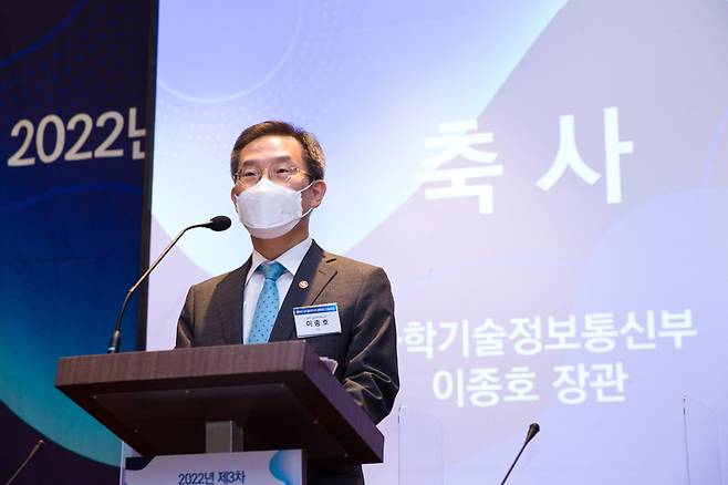 [서울=뉴시스] 이종호 과학기술정보통신부 장관이 25일 오후 서울 강남구 코엑스에서 열린 '2022년 제3차 디지털미디어 콘텐츠 진흥포럼' 에 참석해 축사를 하고 있다. (사진=과학기술정보통신부 제공) 2022.05.25. photo@newsis.com *재판매 및 DB 금지