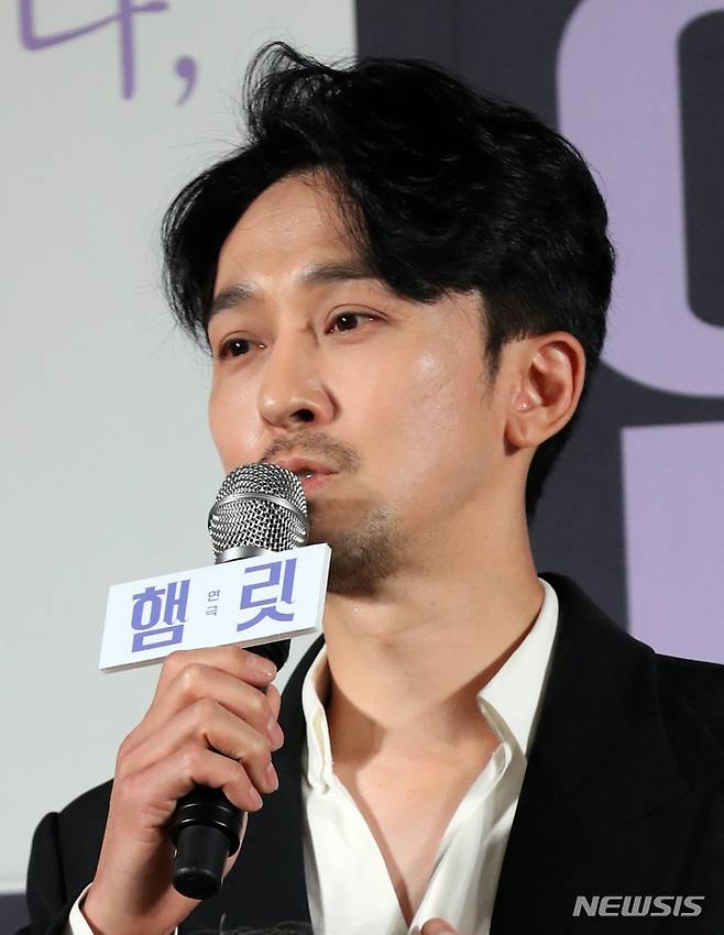 [서울=뉴시스] 박진희 기자 = 연극 '햄릿' 출연 배우 강필석이 25일 서울 중구 충무아트센터에서 제작발표회를 하고 있다. 연극 '햄릿'은 오는 7월 13일부터 8월 13일까지 국립극장 해오름에서 공연한다. 2022.05.25. pak7130@newsis.com