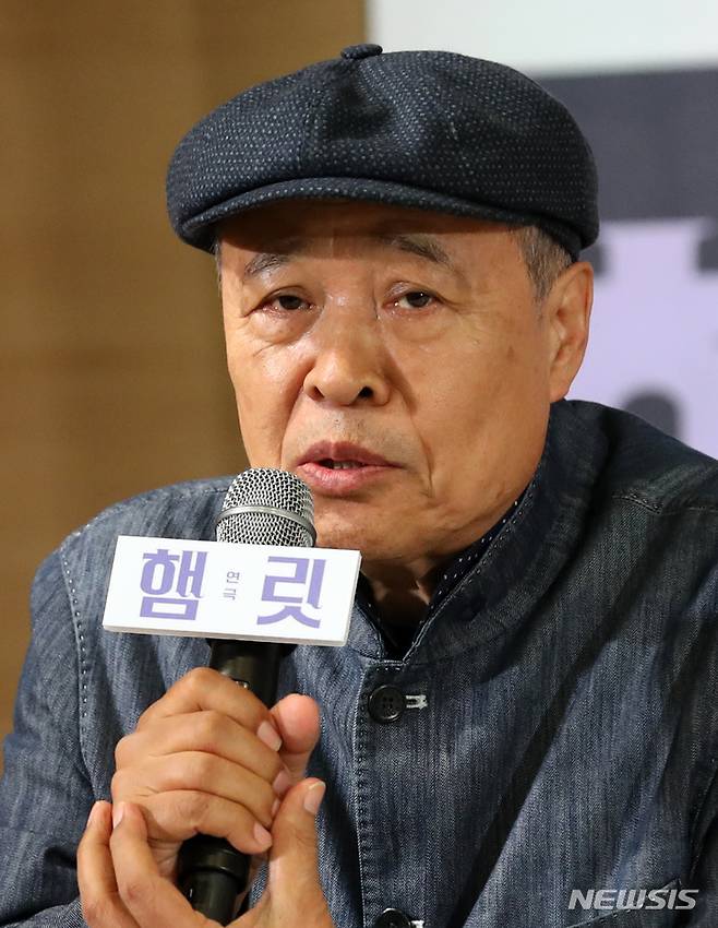 [서울=뉴시스] 박진희 기자 = 연극 '햄릿' 연출 손진책이 25일 서울 중구 충무아트센터에서 제작발표회를 하고 있다. 연극 '햄릿'은 오는 7월 13일부터 8월 13일까지 국립극장 해오름에서 공연한다. 2022.05.25. pak7130@newsis.com