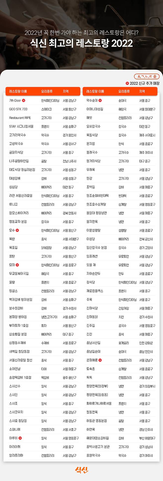 리뷰 기반 맛집 서비스 식신이 25일 올해의 별 맛집(스타 레스토랑) 명단을 발표했다.