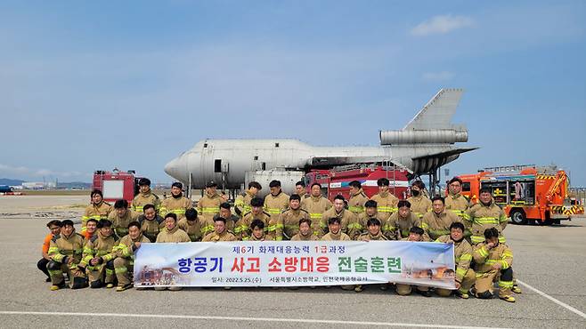 서울소방학교(교장 성호선)는 25일 인천공항공사에서 항공기 사고대응 훈련을 진행했다.