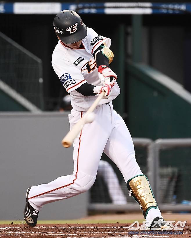 2022 KBO리그 한화 이글스와 두산 베어스의 경기가 25일 한화생명이글스파크에서 열렸다. 2회말 2사 한화 박정현이 적시타를 날리고 있다. 대전=박재만 기자 pjm@sportschosun.com/2022.05.25/