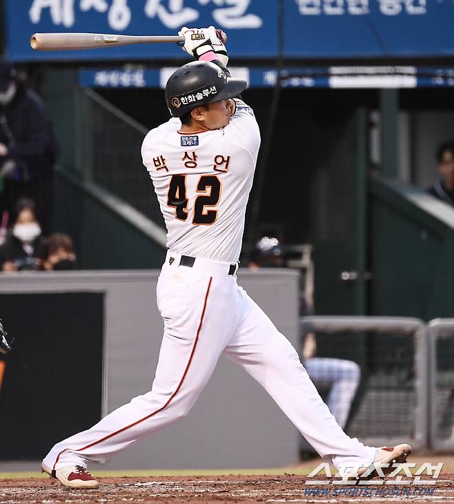 2022 KBO리그 한화 이글스와 두산 베어스의 경기가 25일 한화생명이글스파크에서 열렸다. 3회말 선두타자 한화 박상언이 안타를 날리고 있다. 대전=박재만 기자 pjm@sportschosun.com/2022.05.25/