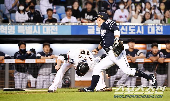 2022 KBO리그 한화 이글스와 두산 베어스의 경기가 25일 한화생명이글스파크에서 열렸다. 4회말 1사 3루 한화 하주석이 런다운에 걸린 상황에서 태그를 피하려 애쓰고 있다. 대전=박재만 기자 pjm@sportschosun.com/2022.05.25/