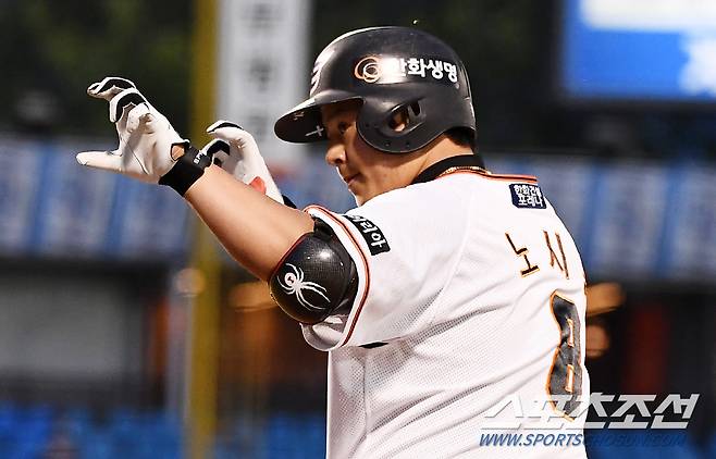 2022 KBO리그 한화 이글스와 두산 베어스의 경기가 25일 한화생명이글스파크에서 열렸다. 4회말 1사 한화 노시환이 안타를 날린 뒤 환호하고 있다. 대전=박재만 기자 pjm@sportschosun.com/2022.05.25/