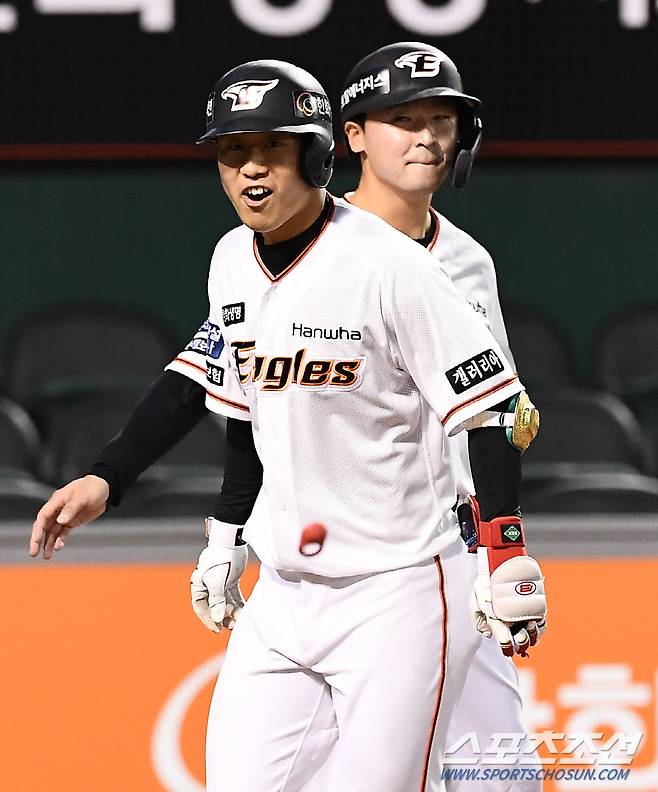 2022 KBO리그 한화 이글스와 두산 베어스의 경기가 25일 한화생명이글스파크에서 열렸다. 4회말 2사 3루 한화 박정현이 투런포를 날린 뒤 환호하고 있다. 대전=박재만 기자 pjm@sportschosun.com/2022.05.25/